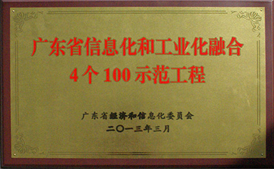 信息化建設項目被認定為“廣東省信息化與工業化融合‘4個100’示范工程;