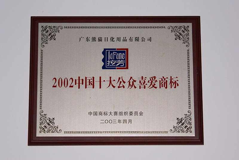 拉芳品牌榮獲“廣東省名牌產品”“中國十大公眾喜愛商標”榮譽。